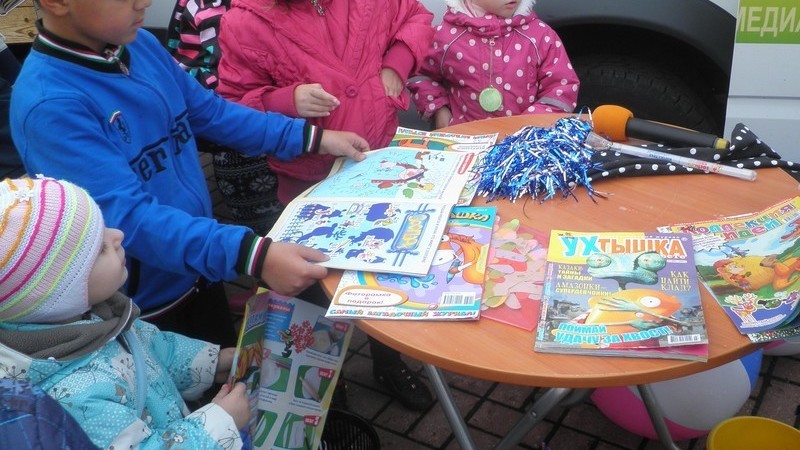 На центральной площади около спортивно – оздоровительного комплекса «Фрегат» библиомобиль развернул свою работу. Каждый желающий мог найти себе занятие по душе: можно было полистать детские журналы, сложить из кубиков иллюстрации к русским народным сказкам, отгадывать загадки, встретиться с литературными героями, потанцевать и принять участие в разнообразных конкурсах.