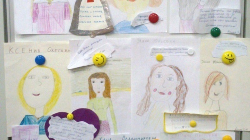 Все желающие активно принимают участие и спешат нарисовать портрет своей любимой учительницы, а также рассказать, какая она.