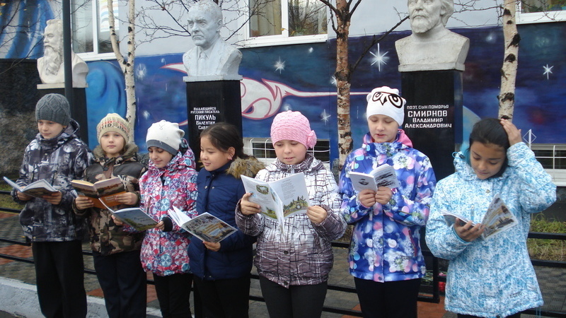 На необычном литературном уроке под открытым небом побывали сегодня школьники города Мурманска