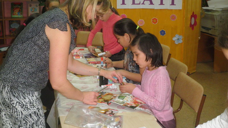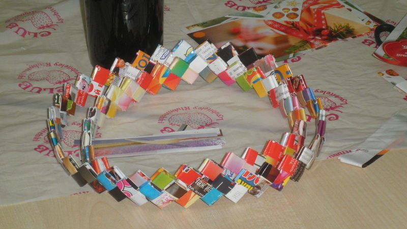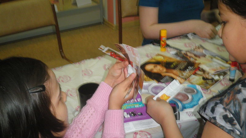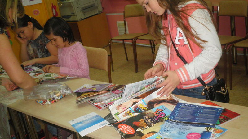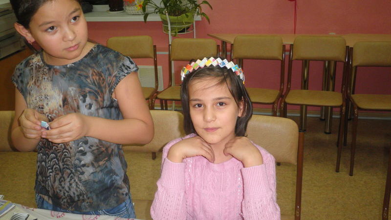 Дети во внеурочное время делали поделки из бросовой бумаги. Это обручи на голову из старых журналов и браслетики. Начало положено, продолжение следует. Итог – выставка работ в декабре.