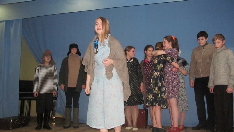Они представили зрителям отрывки из нового спектакля, посвященного 70-летию Победы, рассказывающего о трагических судьбах детей во время Великой Отечественной войны, о истории нашего народа, каждого человека, каждой советской семьи.