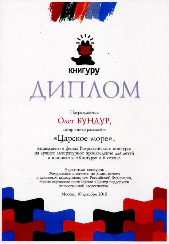 Поэтому мы ещё раз поздравляем Олега Бундура с победой и с нетерпением ждём издания его книги "Царское море", которая скоро появится в «Детгизе»!