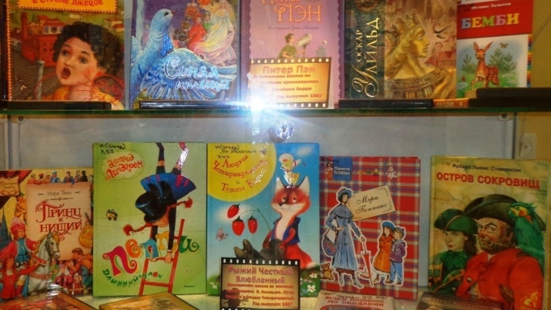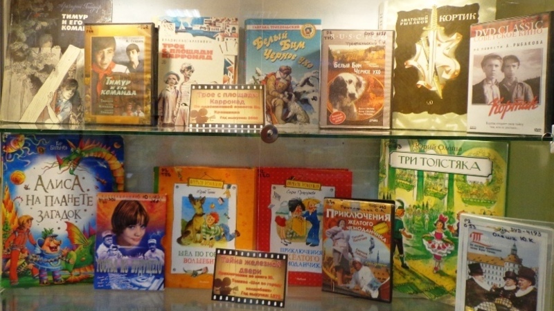 На экспозиции представлены книги, по мотивам которых были сняты детские фильмы российских режиссеров. Кроме того на выставке представлены диски с соответствующими фильмами.
