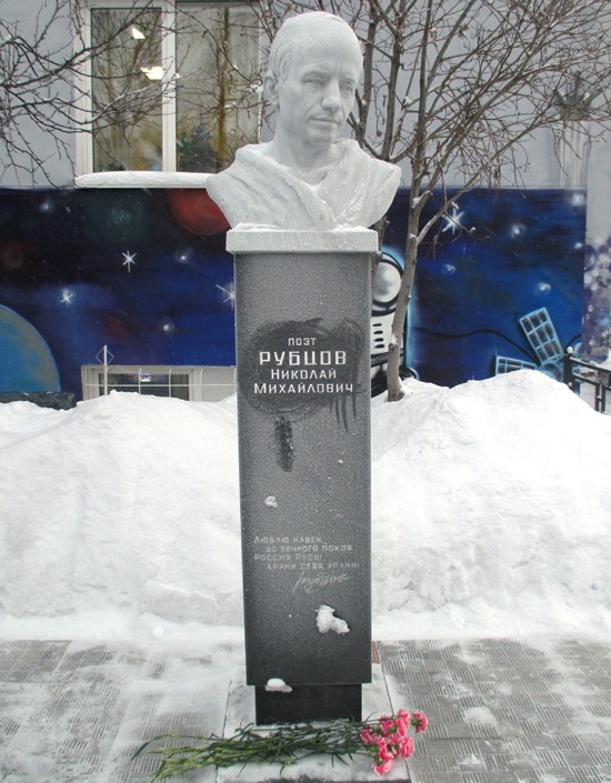 Завершились Чтения возложением цветов к мемориальному бюсту Николаю Рубцову на Алее писателей перед зданием библиотеки.