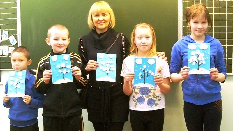 Младшие школьники в это время с увлечением своими руками создавали зимний пейзаж-аппликацию.