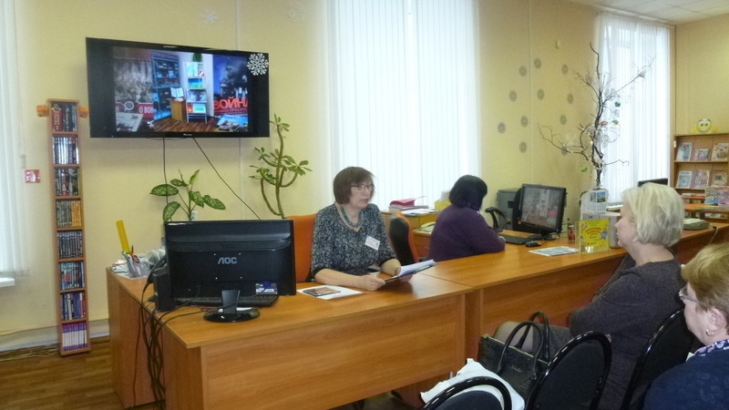 Участники встречи совершили виртуальную экскурсию по разделам выставки, которая кроме обзора документов представленных на выставке, включала видеоролики, созданные сотрудниками отдела, список информационных источников, интерактивные ссылки на ресурсы Интернет, которые можно использовать в работе.