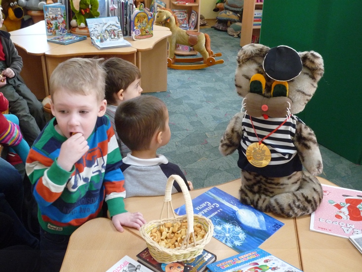 Как только ребята все хором повторили за Умкой эти слова «Я люблю тебя!», сугроб растаял, а там оказалась кошка Мурмяунчанка, которой не страшны никакие морозы и сугробы, ведь она же мурманская кошка! Мурмяунчанка поблагодарила ребят за то, что они откопали ее из сугроба, и пригласила их принять участие в акции «Кошкин дом», а также угостила всех вкусными «рыбками» из своего лукошка!