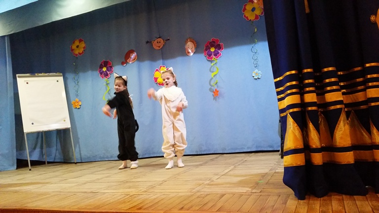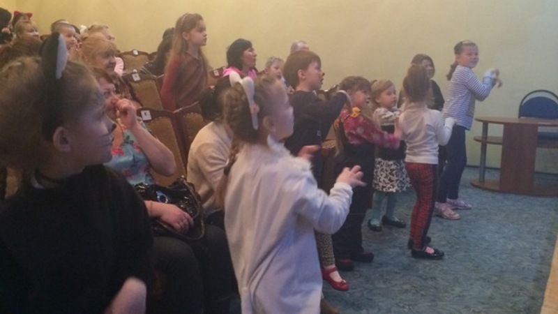 С тетей Кошкой ребята играли в любимые занятия котят, отгадывали загадки. Девочки-котята из детского сада №15 порадовали всех веселым танцем про Мурлыку.