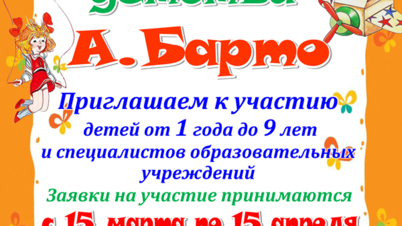 На конкурс принимаются видео с записью стихов А.Л. Барто!