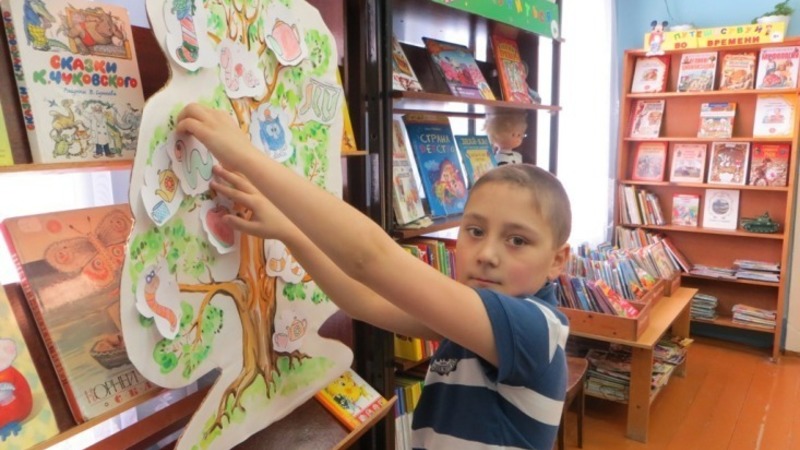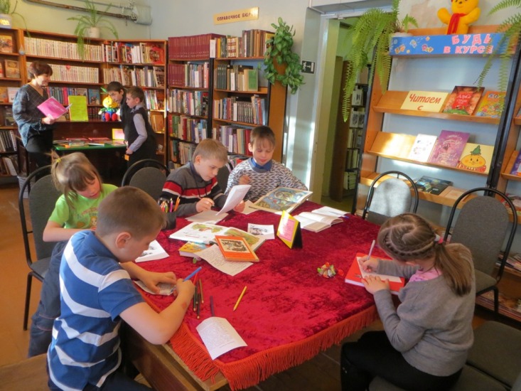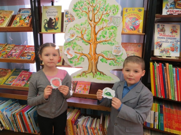 На абонементе для младших школьников шел фестиваль выразительного чтения стихов К.И. Чуковского «Чудо-расчудесное». Дети с большим удовольствием читали стихи, а затем раскрашивали предметы на букву «Ч», которые звучали в стихах, и помещали их на «Чудо-дерево».