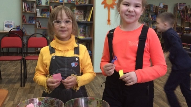 Все желающие выбирали цветной листочек с известными строчками из сказок, рассказов и повестей хорошо знакомых авторов и русских народных сказок и угадывали произведение и автора строчек. Литературные знатоки награждались вкусной конфеткой!
