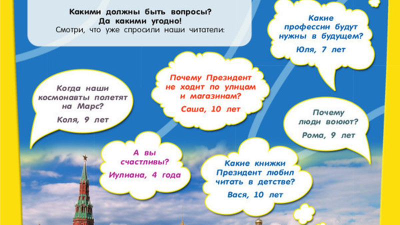 Ответы на самые интересные вопросы прозвучат во время прямой ежегодной линии с Президентом Российской Федерации, которая пройдёт 14 апреля в 12 часов, а также будут опубликованы в специальной рубрике на страницах детского еженедельного издания.