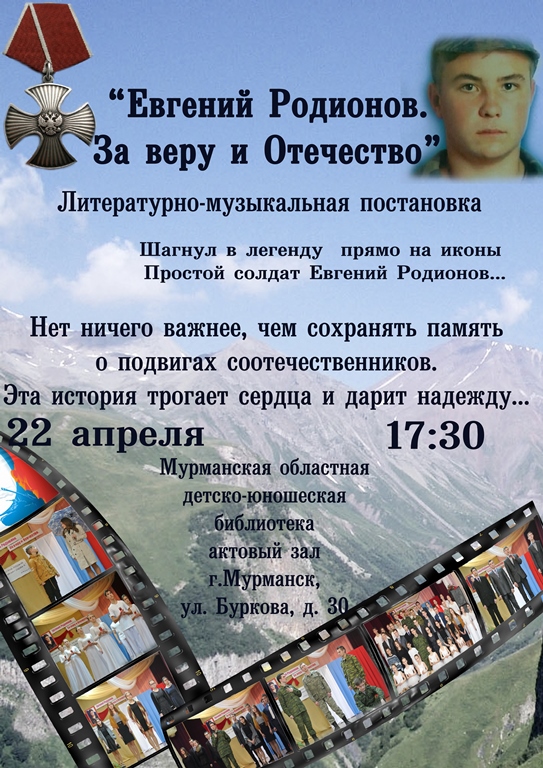 литературно-музыкальная постановка «Евгений Родионов. За веру и Отечество», поставленная обучающимися 9-11 классов (п. Высокий, Мурманская область).