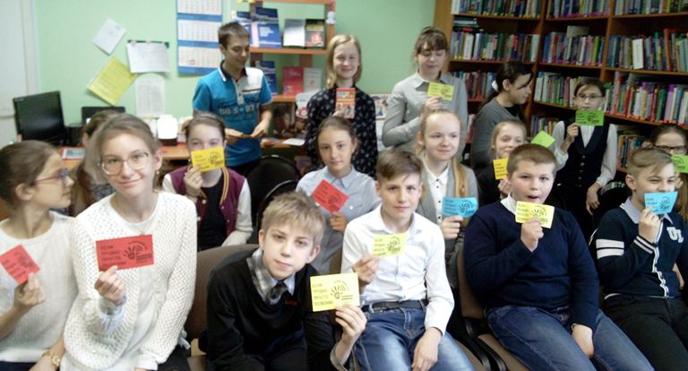 В центральном холле библиотеки юным мурманчанам раздавались флаеры «Просто позвони!».