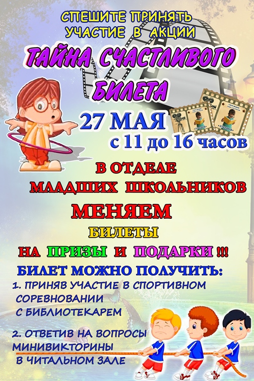 Во всероссийский день библиотек отдел учащихся младших школьников приглашает своих читателей принять участие в акции «Тайна счастливого билета»