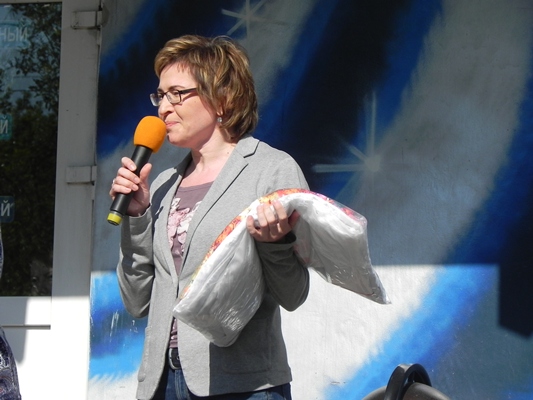 С приветственным словом к собравшимся библиотекарям и читателям обратилась Заслуженный мастер спорта РФ, председатель комитета по делам семьи, молодежи и спорту Мурманской областной Думы Лариса Николаевна Круглова, подарила библиотеке спортивный олимпийский костюм Сочи – 2014.