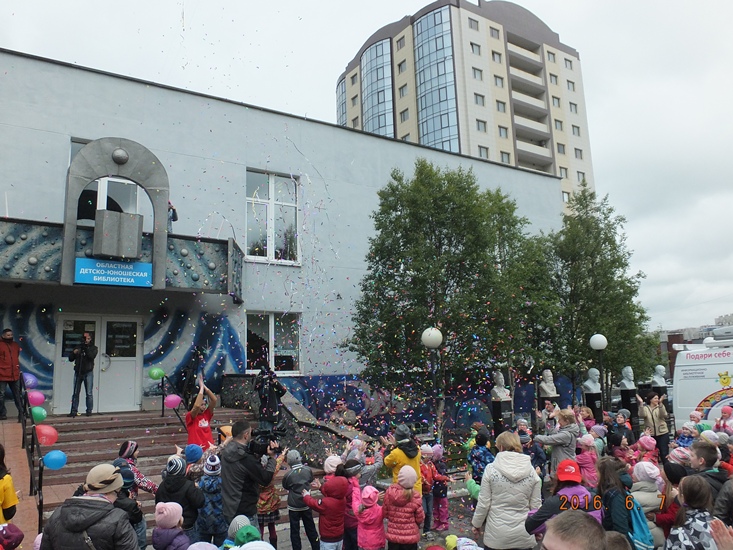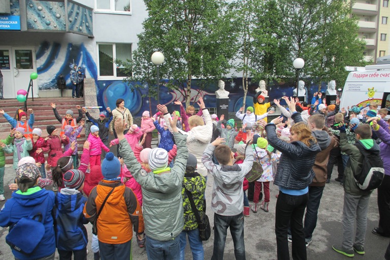 Это традиционный праздник, организованный библиотекой уже в 14-й раз. Дети, посещающие оздоровительные лагеря отдыха в Мурманске, читатели библиотеки стали участниками веселого красочного действия. Заместитель директора Феклистова Наталья Владимировна поприветствовала всех собравшихся, пожелала отличной погоды, интересного досуга, отличного общения и, конечно, не забывать книгу и библиотеку. И дети, и взрослые с удовольствие сыграли в игру «Что есть в библиотеке», а потом завели большой и дружный хоровод.