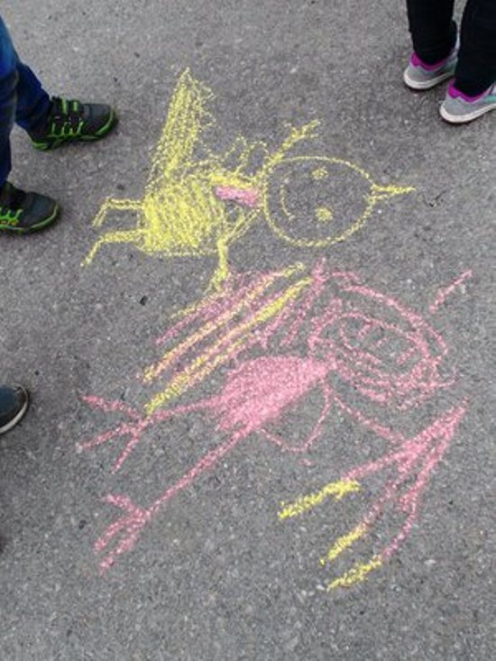 Площадь перед библиотекой была разукрашена цветными мелками: дети рисовали своих любимых книжных и мультипликационных героев.