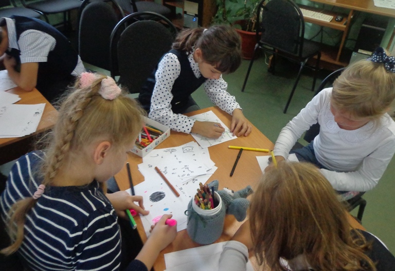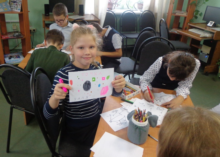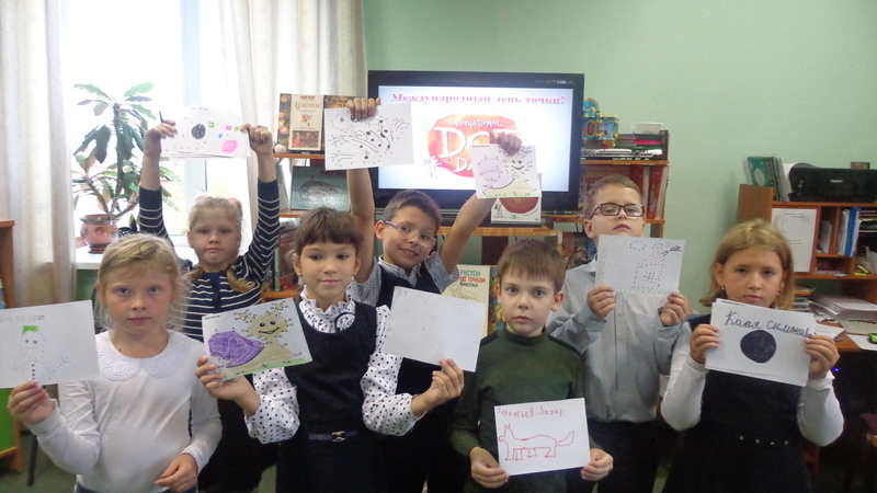 В читальном зале отдела обслуживания школьников 1-4 классов собрались ребята младшего школьного возраста. Участники познакомились с книгой Питера Рейнолдса, порассуждали о роли точки в различных областях нашей жизни, побеседовали о творческом начале в каждом человеке, привели примеры из жизни известных людей. В заключение каждый оставил свой след в истории праздника, нарисовав свою точку.