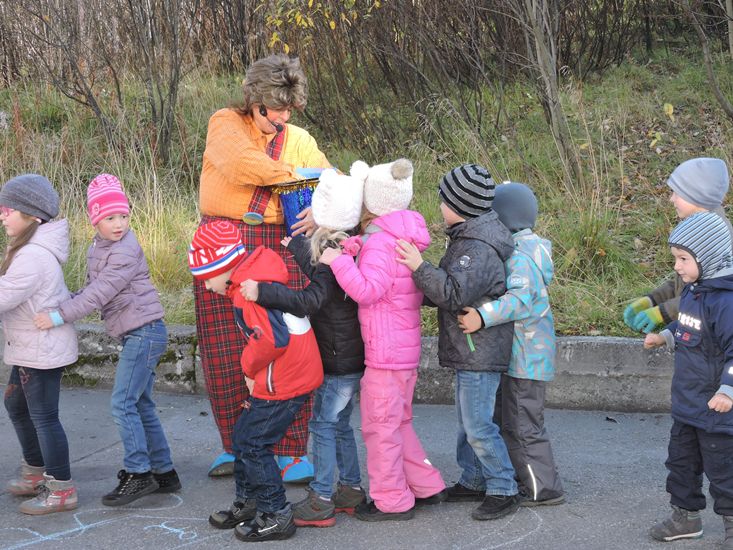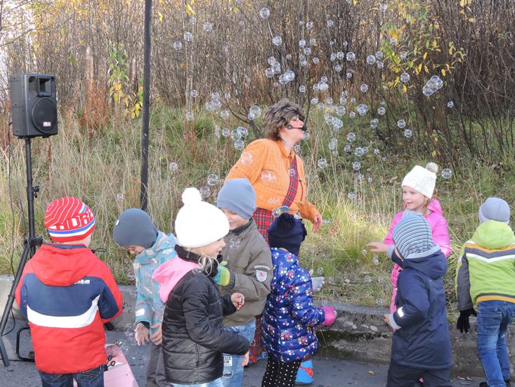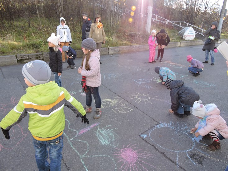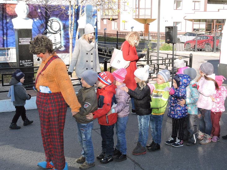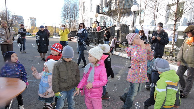 Маленьких мурманчан ждало море танцев, игр и конкурсов. Вместе с Кисточкой дети и родители делали веселую разминку, пели хвалебную песню солнышку, танцевали и играли. А Карлсон пригласил всех в волшебное путешествие по Мурманску на паровозике «Букашка». На остановке «Семеновское озеро» всех ждала игра «Сердитая рыбка», на остановке «Стадионе» – зажигательные эстафеты, ну а около библиотеки – стихи-загадки, для знатоков родного города.