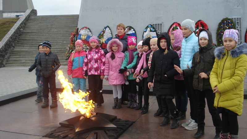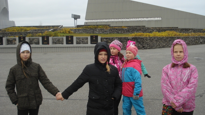 Экскурсанты побывали у мемориала «Защитникам Советского Заполярья в годы Великой Отечественной войны», который мурманчане ласково называют «Алешей». Многое дети сегодня узнали впервые. Например, о том, что еще в конце шестидесятых годов прошлого века было принято решение о строительстве монумента на самой высокой точке сопки для того, чтобы фигура солдата была отчетливо видна с любого места в городе. Оказывается, несмотря на то, что внутри монумент пуст, его вес составляет более 5 тысяч тонн. А по размерам он в два раза меньше, чем монумент «Родина-мать», который находится в городе Волгограде.