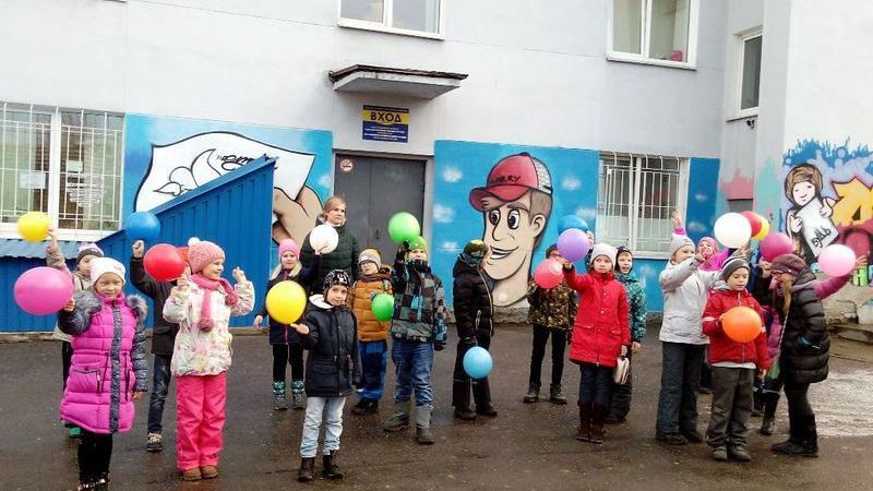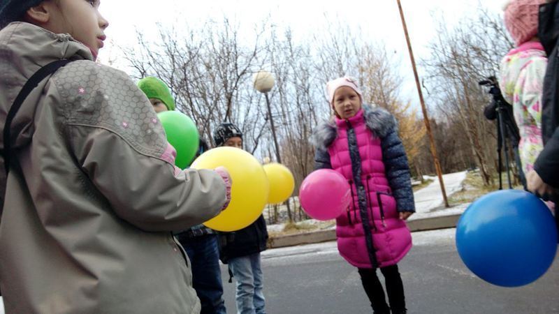 В завершении праздника состоялся флэш-моб: дети составили слово «Россия» из воздушных шаров.