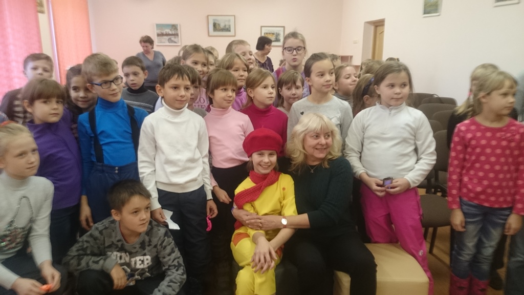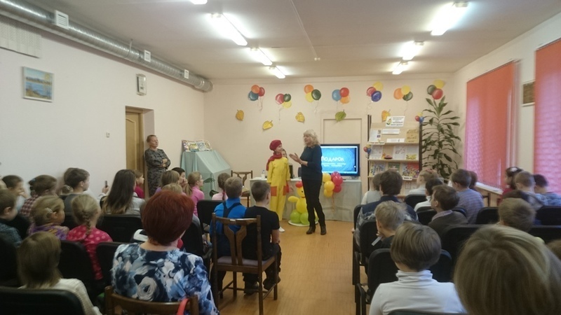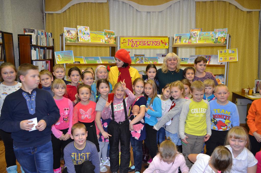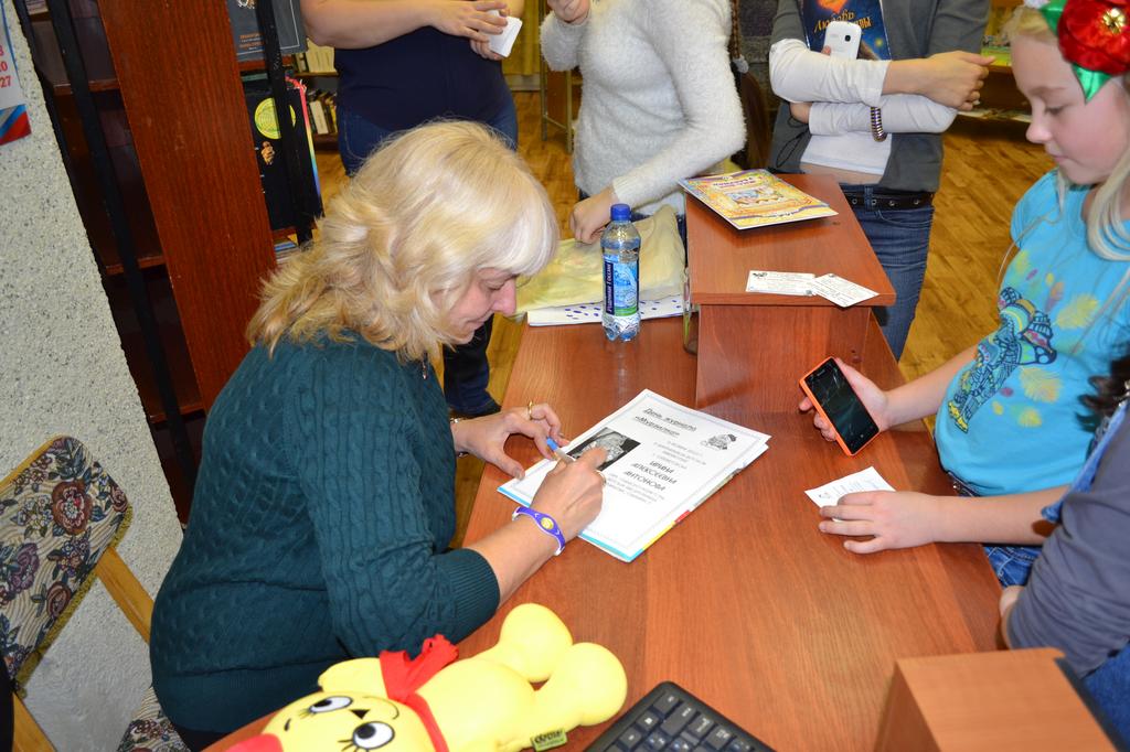 Потом «Мурзилку» принимала Центральная детская библиотека города Оленегорск. И здесь на встречу пришло очень много детей. Ребята хорошо подготовились к встрече с любимым журналом, правильно отвечали на вопросы, отгадывали загадки, посмотрели выпуск киножурнала «Ералаш» и мультфильм, снятые по рассказам Ирины Антоновой, и тоже услышали новую сказку писательницы. А в конце, конечно же, фотосессия и раздача автографов.