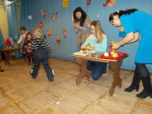 а мамы соревновались в умении варить вкусный компот с помощью ребят.