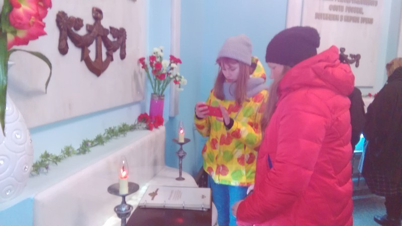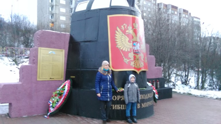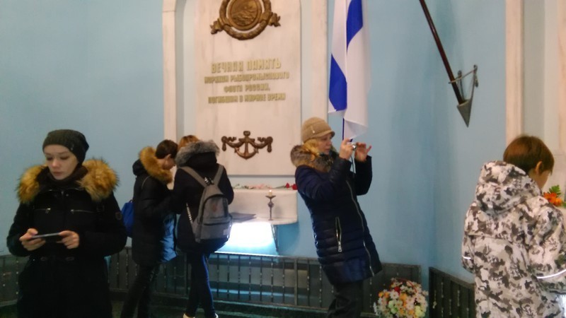 Следующей остановкой стал мемориальный комплекс «Морякам, погибшим в мирное время». Ребята с большим интересом рассматривали маяк, являющийся центральной частью комплекса и даже побывали на первом этаже зала-музея памяти, на пяти стенах которого расположены мемориальные плиты в память о погибших в море в мирное время моряках разных флотов и книги памяти погибших моряков. Внимание детей привлек настоящий судовой якорь, и конечно, фрагмент ходовой рубки атомной подводной лодки «Курск», размещенный здесь в память о трагедии, которая случилась в водах Баренцева моря в 2000 году.