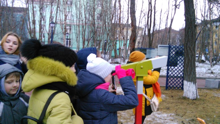 Экскурсия началась с обновленного сквера на улице Шмидта, в центре которого находится мемориал «Рыбакам и кораблям тралового флота, погибшим в годы Великой Отечественной войны». Ребята познакомились с информацией о заслуженных капитанах рыболовецкого флота и судах, погибших в годы Великой Отечественной войны, размещенной на стендах в сквере. А самое интересное – смогли рассмотреть в телескоп боцмана – «морского волка», который обосновался в сквере совсем недавно.
