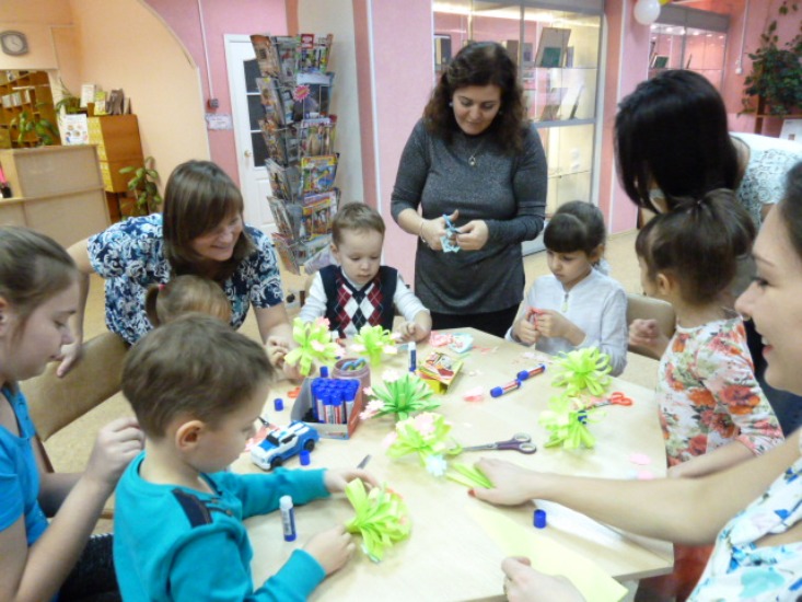 Дети приняли участие в мастер-классе по изготовлению подарка для мам – букета цветов.