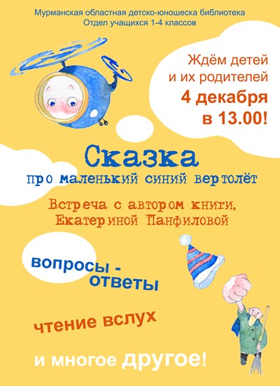 Отдел обслуживания 1-4 классов приглашает всех желающих на встречу с писателем. Екатерина Панфилова – художник-иллюстратор, автор детских книг. Родилась в Мурманске. Пишет и иллюстрирует сказки для детей, как свои, так и чужие.