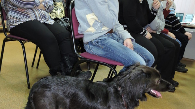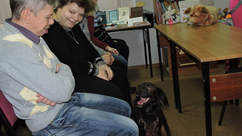 В библиотеку Виктория пришла не одна, а со своим подопечным Фродо. Милый пес вел себя очень достойно, активно знакомился с ребятами, с интересом осматривал новые помещения. А когда-то он был найден замерзающим и со сломанной лапой на улице г. Мурманска, но пристроен на передержку в семью, прооперирован и подготовлен для новой домашней жизни. Фродо и многие подобные найденыши получили помощь от волонтеров и кураторов Фонда, а у многих началась просто новая жизнь.
