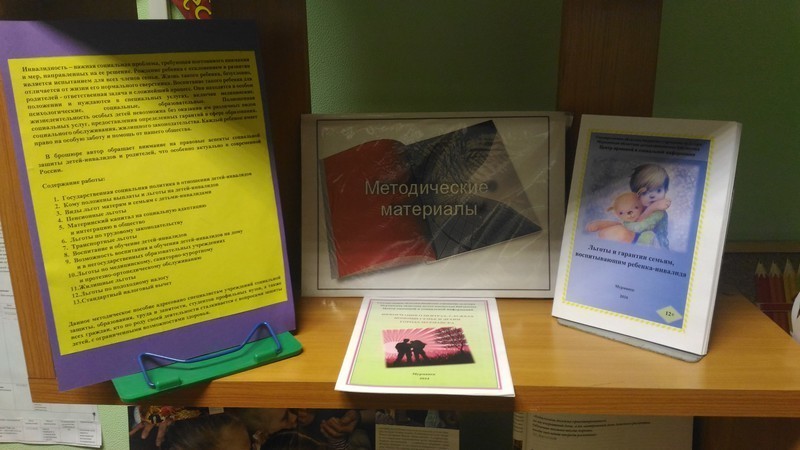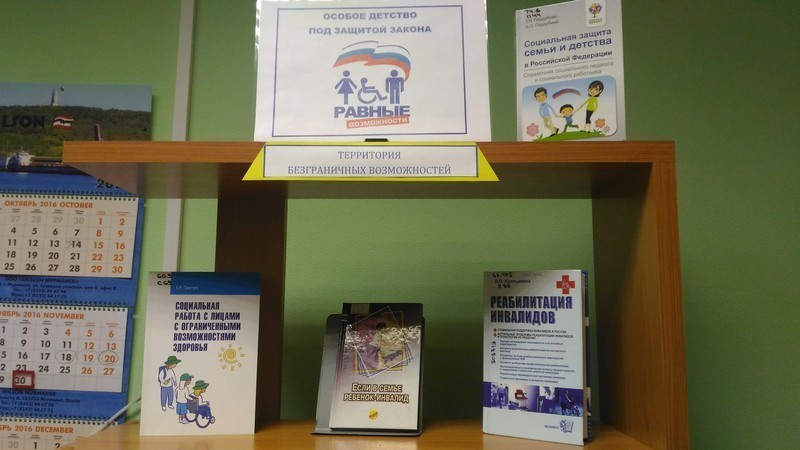 На оформленной тематической книжной выставке «Территория безграничных возможностей», были представлены книги, журналы, буклеты, памятки, в которых собраны основные положения действующего законодательства Российской Федерации, в части регулирования труда, социальных льгот и государственных гарантий инвалидам.