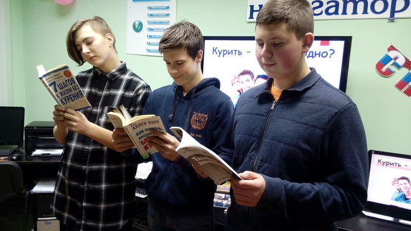 Во время просмотра электронной презентации о вреде, наносимом организму сигаретами, школьники приняли активное участие в беседе. Вставляли слова, пропущенные в цитатах, отвечая на вопросы викторины «Известные люди – против курения». В ходе дискуссии пришли к выводу, что большинство актёров ведут здоровый образ жизни и что современная молодёжь предпочитает заниматься спортом и правильно питаться.