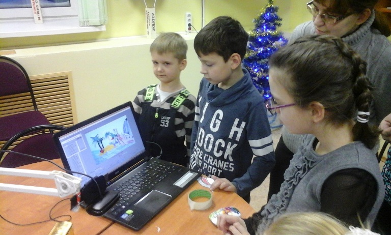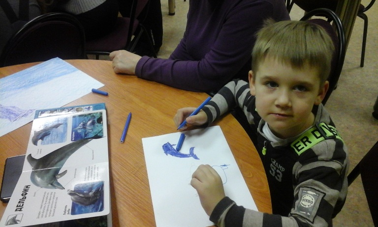 Дети и родители с увлечением делали мультфильм про пиратов. Сначала были художниками: рисовали и, конечно же, заглядывали в книги, чтобы точно нарисовать пирата, а не разбойника. Помогли книги нарисовать и дельфина, и акулу. Всё остальное рисовали, как подсказывала фантазия. Затем были операторами и сценаристами: составляли картинки для слайдов, озвучивали, монтировали презентацию.