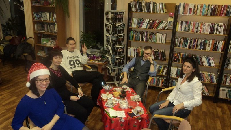 А во второй части встречи «книжные бобры» отмечали настоящий Новый год! За чашечкой вкусного чая с домашним имбирным печеньем почему бы и не сыграть в «Литературный бум» или поугадывать, какой литературный герой загадан? Ну и конечно же, никто не ушел без новогодних книжных подарков!