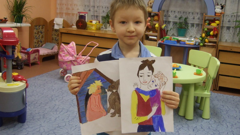 Ребята поблагодарили Гетманову Татьяну Анатольевну за книги, которые она им приносила. Малыши с удовольствием прочитали их с родителями. Дети показали свои рисунки к любимым сказкам: «Не буду просить прощения» С. Прокофьевой, «Как Маша поссорилась с подушкой» Г. Лебедевой, «Красная шапочка» Ш. Перро и др.