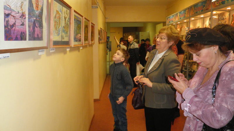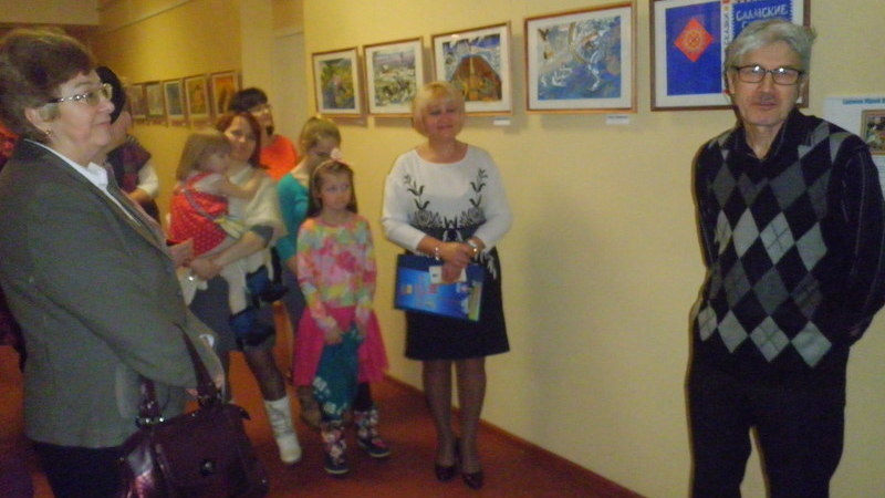 Все присутствующие увидели удивительные иллюстрации к саамским сказкам, познакомились с художником. Юрий Николаевич рассказал о себе и своей семье. Подчеркнул, что семья помогает ему в сложной жизненной ситуации.