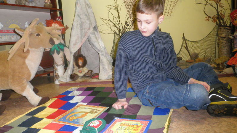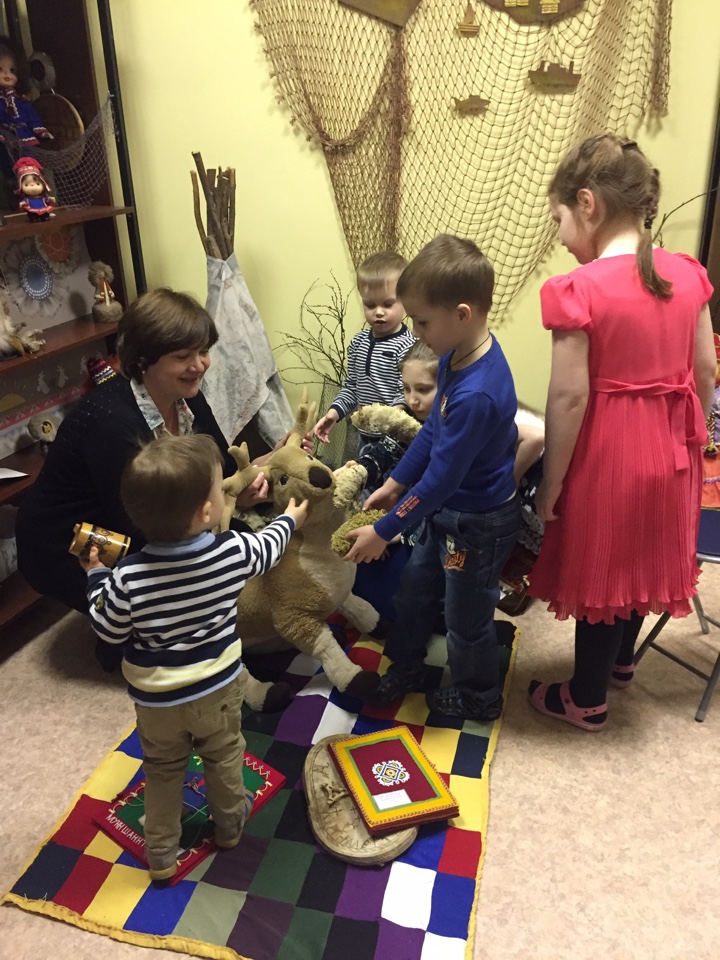 Ребята, которые посетили в этот день краеведческий отдел, как обычно нашли себе занятие по душе. Одни читали сказки в уютном уголке, другие кормили северного оленя ягелем и грибами.