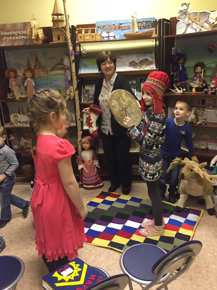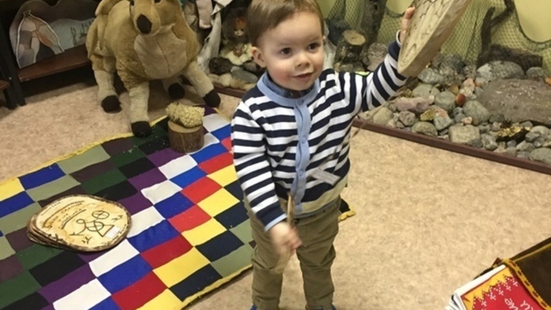 А малышам понравилось «шаманить», используя настоящий шаманский бубен.