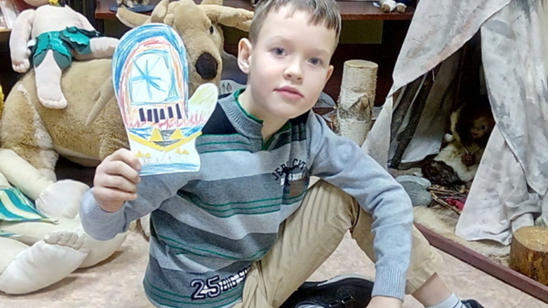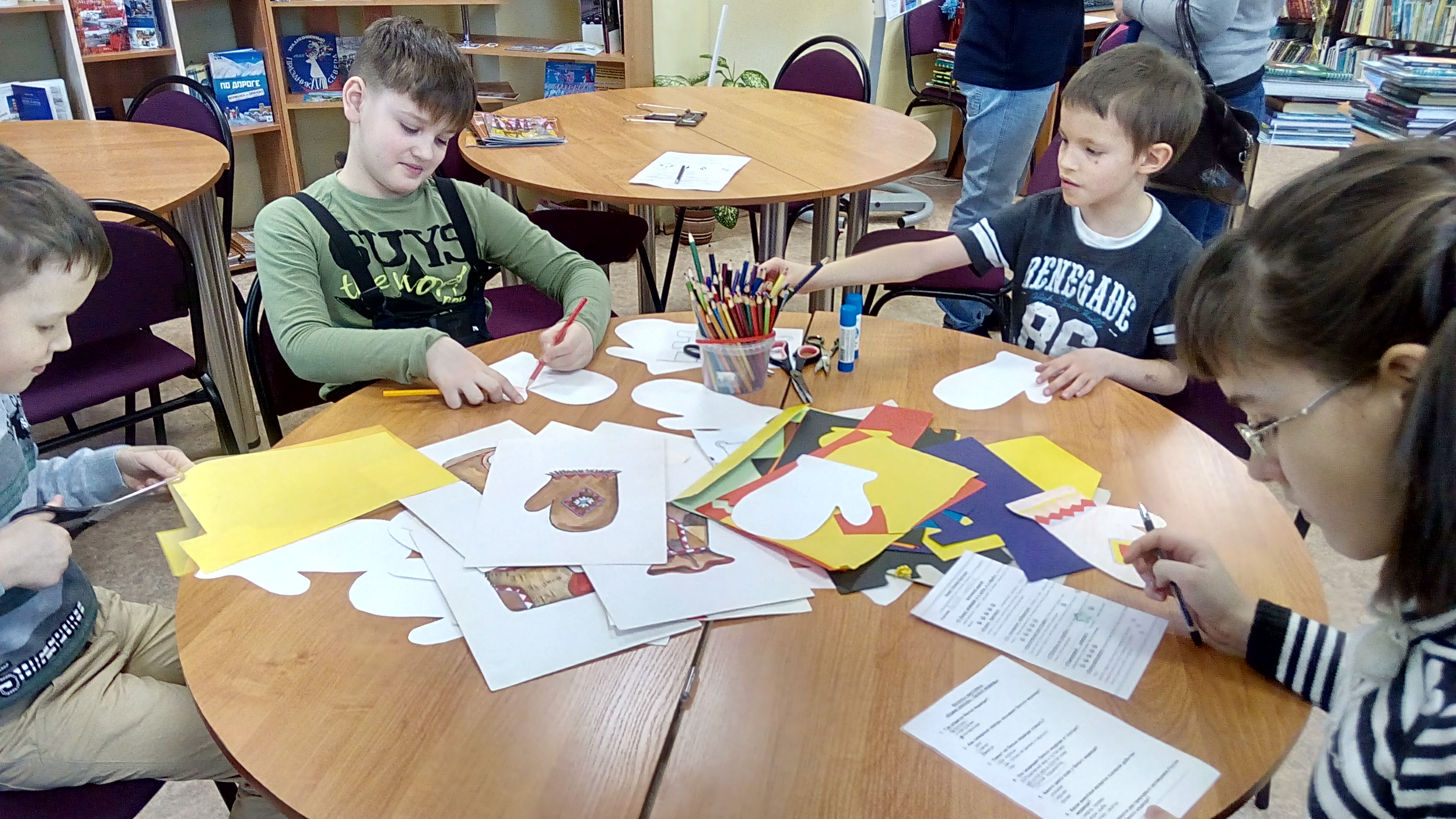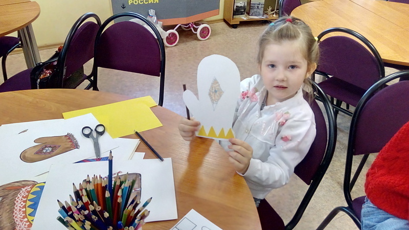 Ознакомившись с красочной выставкой, все участники чтений вернулись в краеведческий отдел и смастерили варежку-рукавичку с саамским узором.