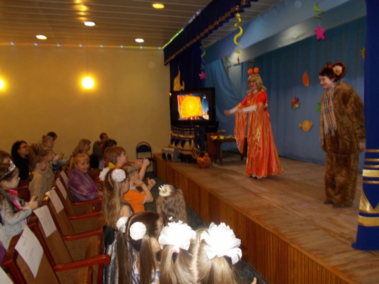 Совершенно случайно на празднике оказался Чебурашка. Ребята познакомились с ним, вместе спели песенку и сделали солнечную зарядку. Только тогда в библиотеке стало тепло и светло и появилась фея страны, где много, много солнышек.