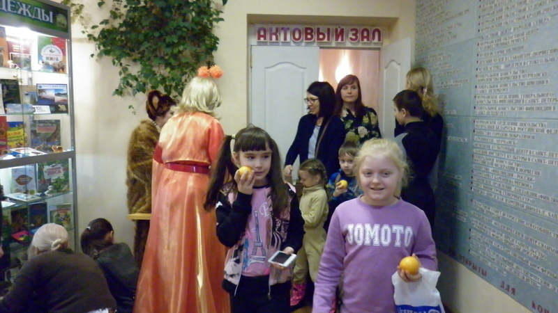 Маленькие читатели вместе с Чебурашкой и Феей оранжевой страны отправились в удивительное путешествие по волшебной стране – Апельсинии. Все вместе отгадывали вкусные загадки, узнали по запаху фрукты, потанцевали на зажигательной оранжевой дискотеке, проявили свою силу, ловкость и умение танцевать, участвуя в конкурсах и играх: «Цитрусжим», «Апельсиновое солнце», «Диско апельсин».