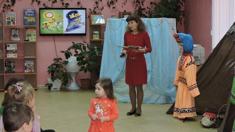 Ребята вместе с библиотекарем прочитали некоторые эпизоды из книги про Сампо-Лопарёнка.