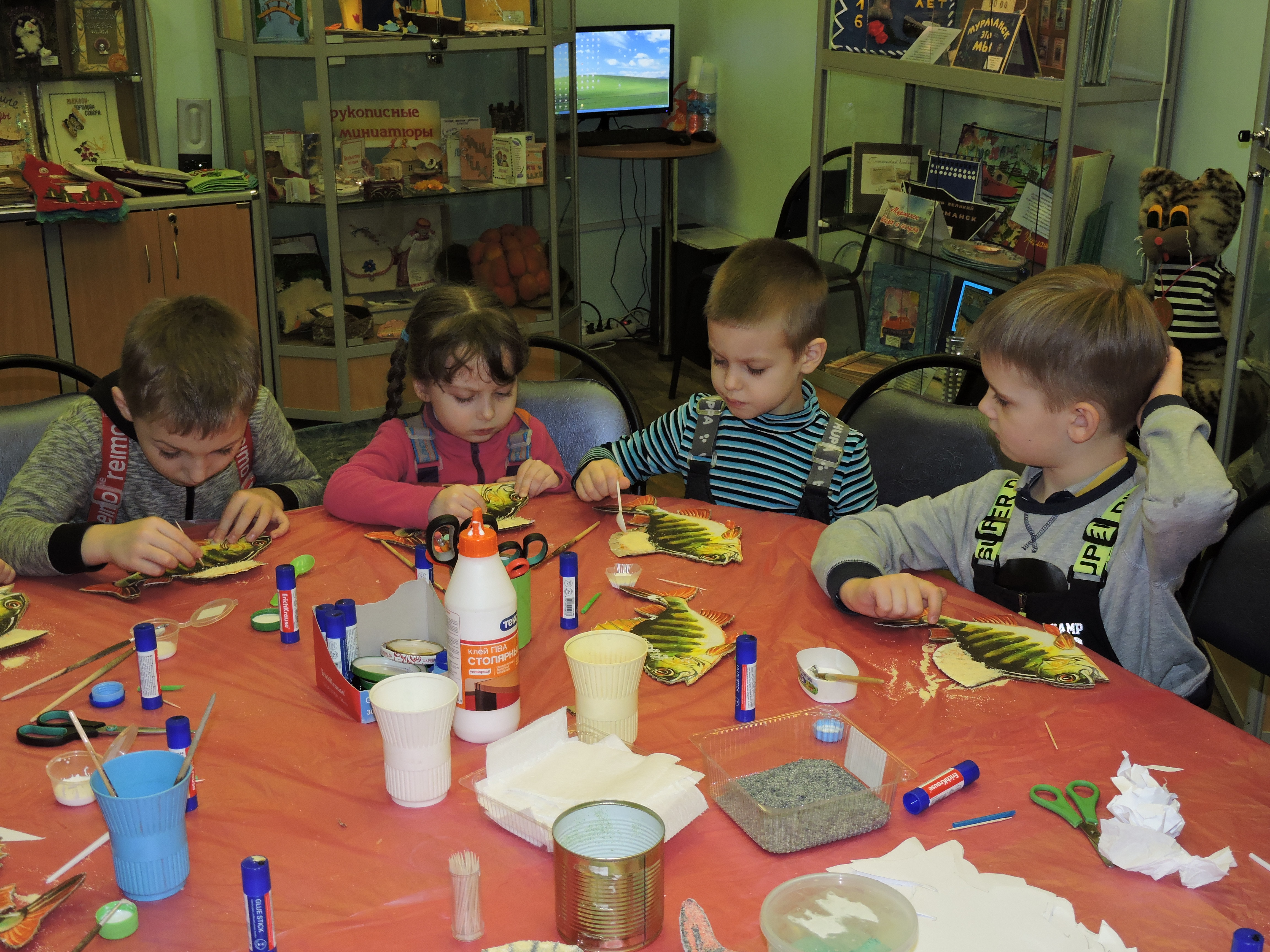 Свою поделку ребята сделали из картона и цветной, крашенной манки. В итоге получилась яркая и красивая рыбка, которая будет несомненным сюрпризом нашим северным соседям.