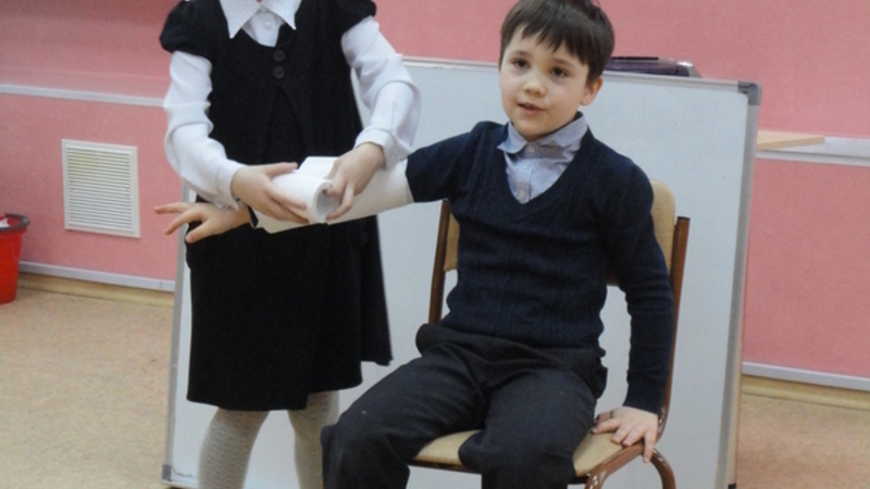 Они выступили в роли капитана и юнги ВМФ. Ребята поучаствовали в настоящих боевых учениях: строевая подготовка, выбор командиров взводов, вспомнили русских полководцев, «постреляли» (задание на меткость), перетягивали канат, станцевали морской танец «Яблочко», определяли виды вооруженных сил , показали высокие знания по оказанию первой медицинской помощи в конкурсе «Забинтуй раненого», «сходили» в наряд по столовой (вместо картошки чистили апельсины). Завершилось мероприятие подведением итогов: подсчетом звездочек (за каждый правильный ответ взвод получал по звездочке) и поздравлением с наступающим праздником.