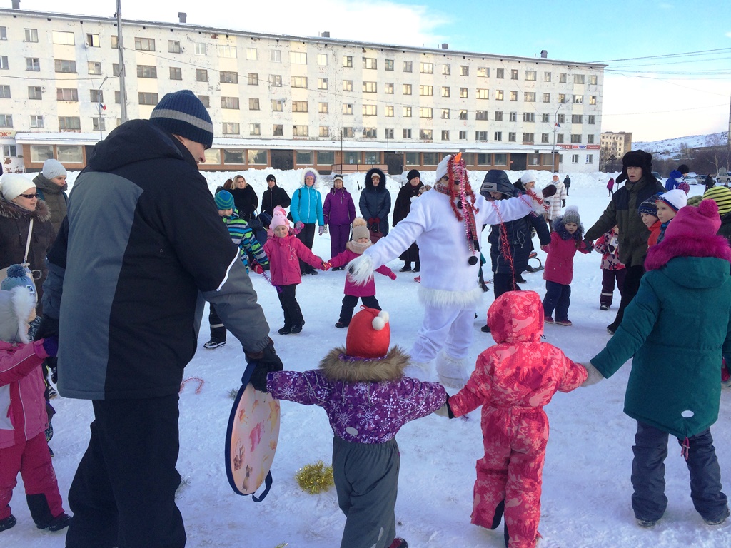 Вместе с детворой и их родителями книжные герои вспомнили о любимых зимних забавах: лепили снеговиков, играли в снежки, катались на саночках, водили хоровод возле елки, роль которой сыграл Снеговик. Все вместе познакомились с обычаями древнего славянского праздника, масленичными играми, хороводами, забавами.