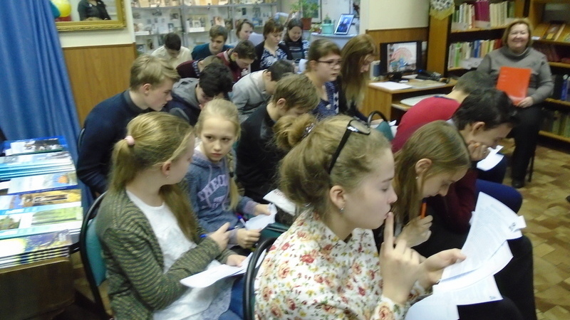 Писали диктант учащиеся 7-8-х классов школ Мурманска и Североморска. Диктант проводила Учёный секретарь Мурманского областного отделения Русского Географического общества Савельева С.П. Не случайно, что мероприятие проходило накануне Международного женского дня 8 марта. Возникает вопрос, а насколько география – женская наука, сколько в ней женских атрибутов, что мы знаем о женщинах-географах, членах Русского географического общества. Чтобы разобраться в этом, ребятам были предложены вопросы по данной теме, на которые они успешно ответили. В этом им помогла электронная презентация «Библиокругосветка с великими русскими путешественниками», подготовленная гл. библиотекарем НМО Чуппуевой Л.В.