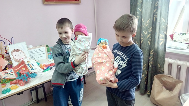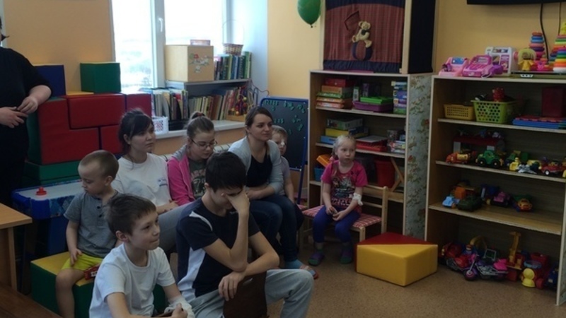 Во втором педиатрическом отделении играла с маленькими пациентами заведующая отделом краеведческой литературы с программой «Моя любимая мамочка». В ходе мероприятия ребят ожидало немало испытаний, ведь быть мамой так не просто. Пациенты отделения попробовали запеленать малыша, развесить белье после стирки, собрать ребенка в школу и сделать многие другие «мамины» дела.